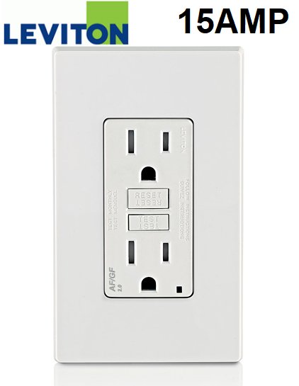 Leviton Self-Test Tamper Resistant Dual-Function AFCI/GFCI Outlet with LED light Indicator - 15AMP - White - (Model: AGTR1-W)