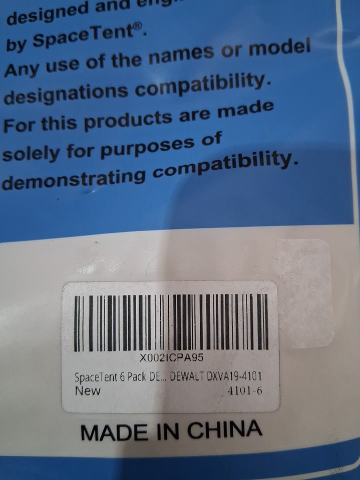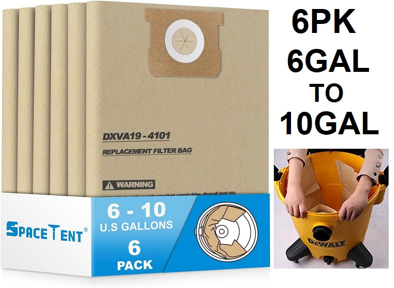 6pk SpaceTent High Efficiency Wet/Dry Replacement Filter Bags for DeWalt models - 6 to 10 gal capacity (model: DXVA19-4101)