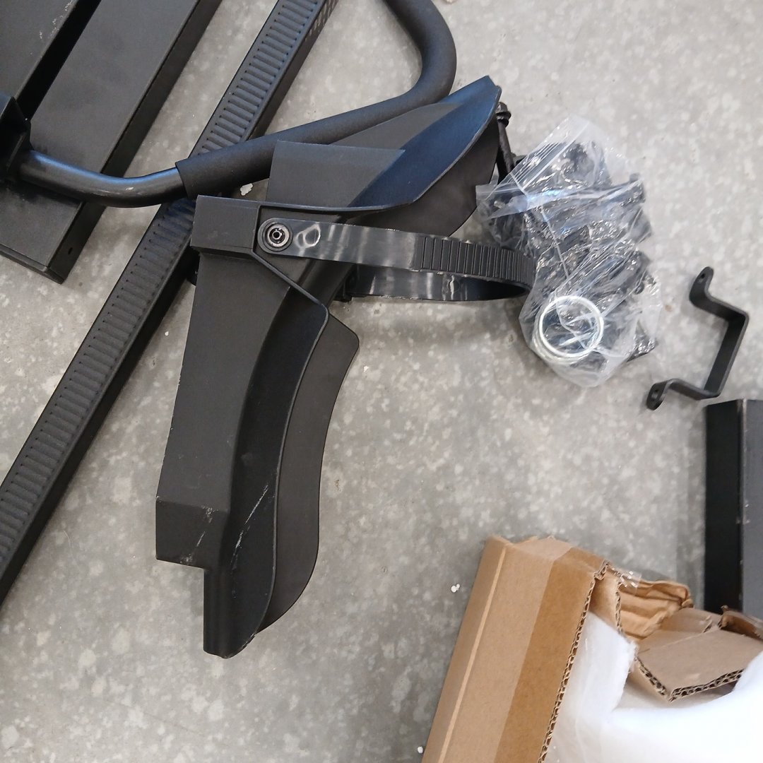 Item has been previously assembled and lightly used, scuffs & scratches are present signaling previous use. Missing a piece for the rear tire to lock into place, as well as a small bar.