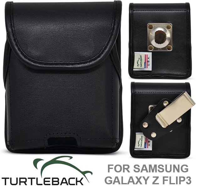 Turtleback Vertical Holster Black Leather Pouch with Heavy Duty Rotating Belt Clip - for Samsung Galaxy Z Flip3 (2021) - BLACK (MODEL: XSM-T)