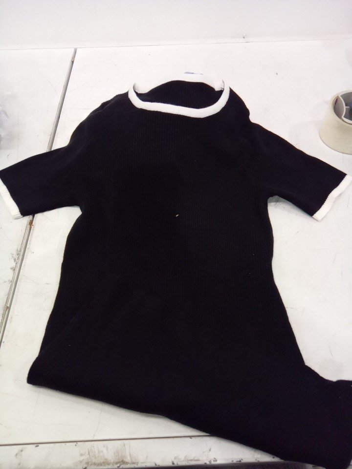 woman's Knit Contrast Piped Round Neck half sleeve top - large - black\white