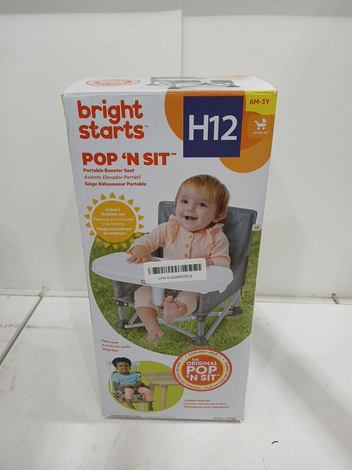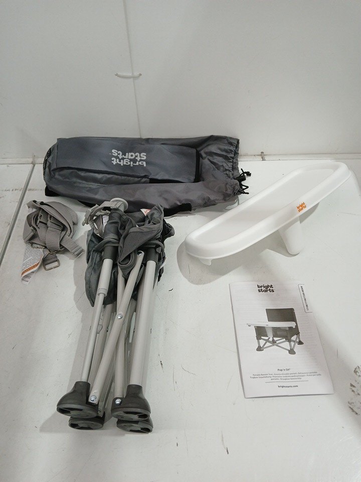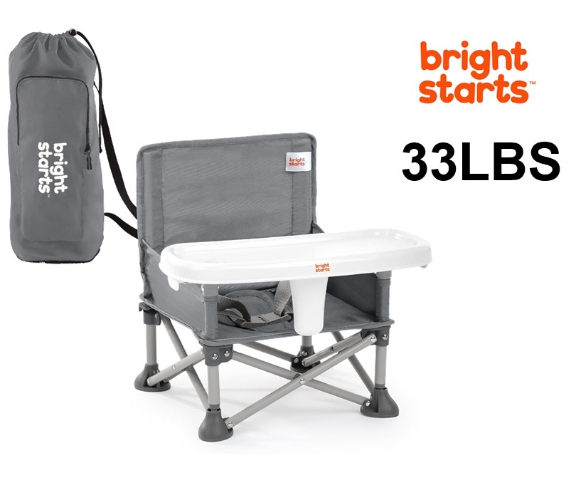Bright Starts POP 'N Sit Portable Booster Seat with carry bag - 33LBS max - Grey (model: H12)