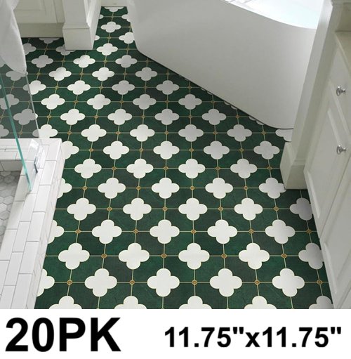 20PK Irisroom Vintage Style French Pattern Self Adhesive Peel and Stick Vinyl Floor Tiles - 11.75" x 11.75" - Green/White