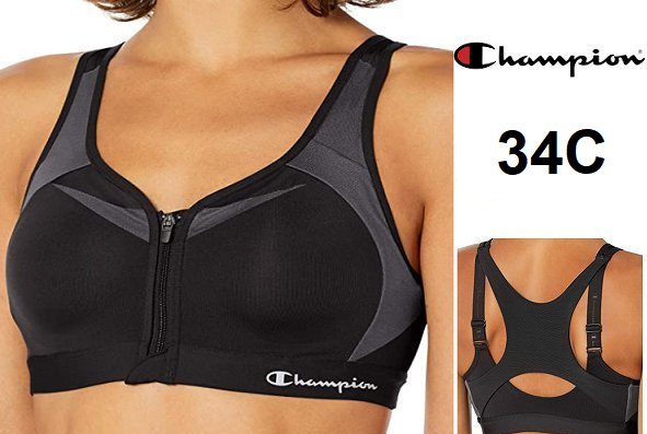 WOMENS' CHAMPION MOTION-CONTROL ZIP SPORTS BRA - 34c - BLACK