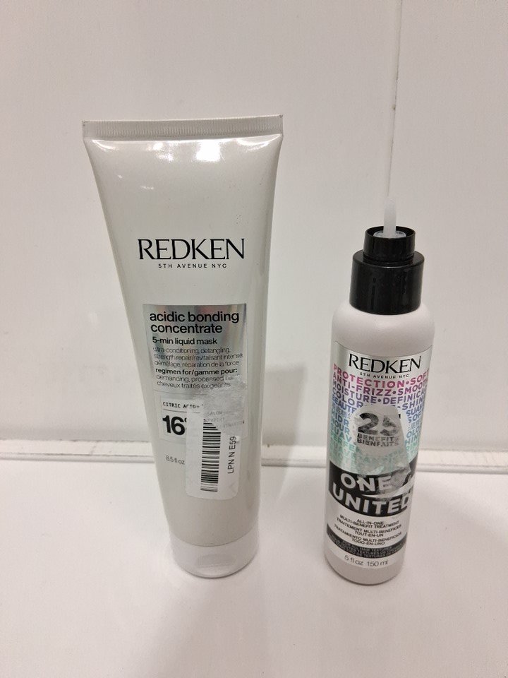 2 assorted redken hair products - acidic bonding concentrate 5 minute liquid mask & all in one multi benefit treatment