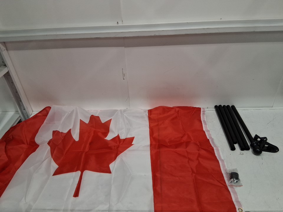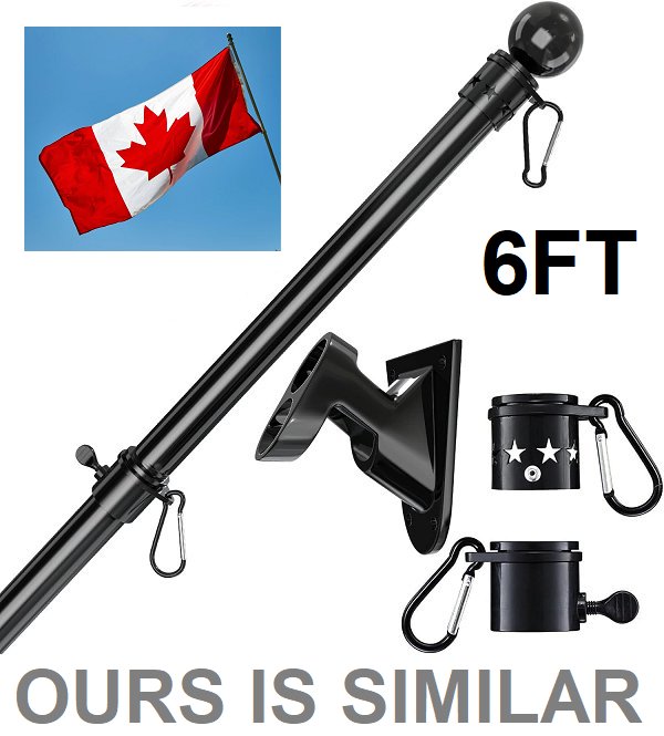 FLAG POLE KIT WITH BRACKETS AND Canadian FLAG - 6FT - BLACK