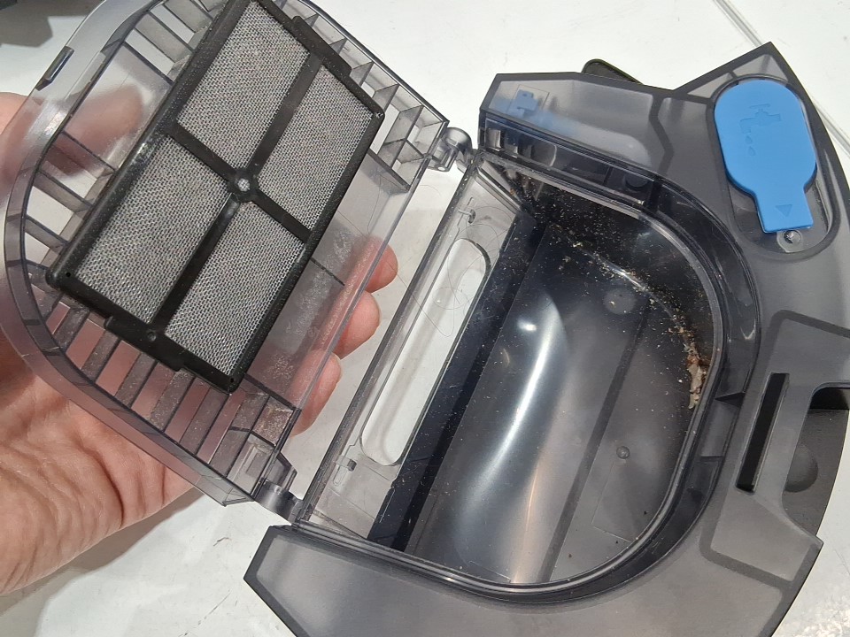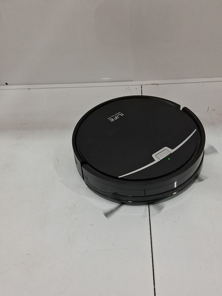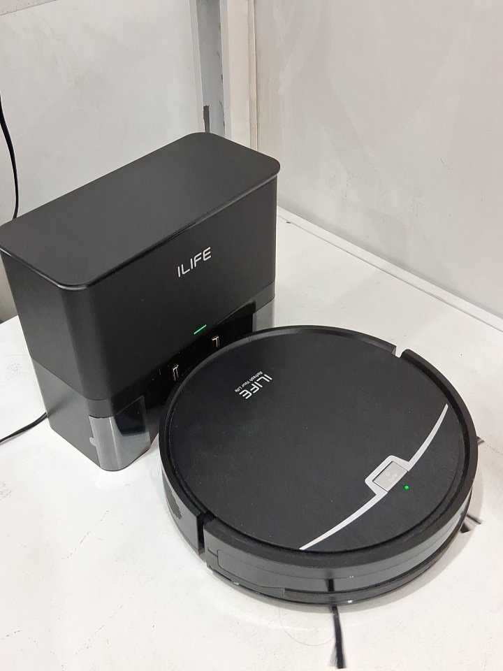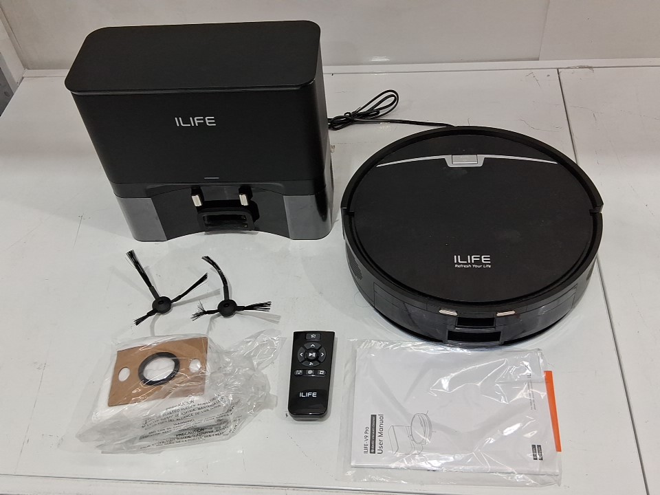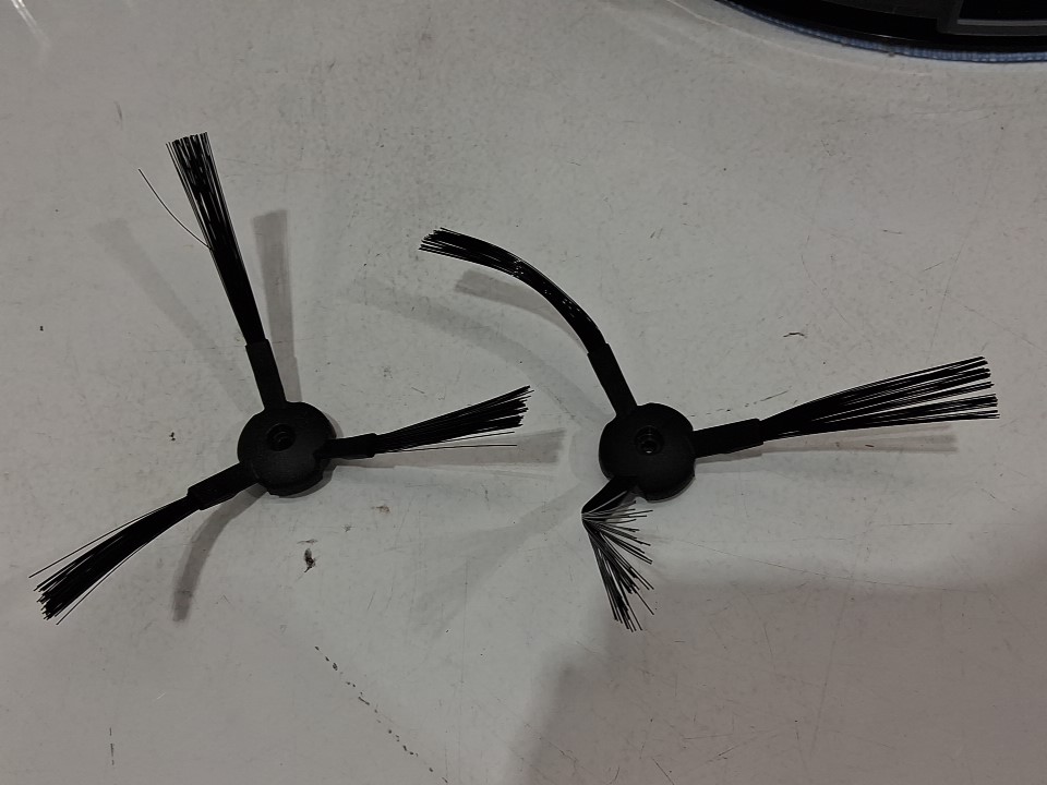 **Tested for power, movement, basic functions (spot clean/return home) using the buttons on the robot.** Item has minor debris in the docking area and dustbin/filter area, light wear on the mop pad and side brushes from previous gentle use, see photos.