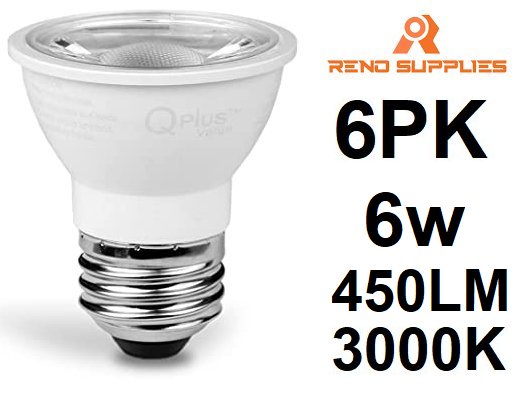 6PK RENO SUPPLIES PAR16 BULBS - 3000K 6w 450lm - WARM WHITE