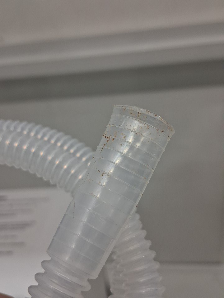 **Tested for power, airflow.** Item has light wear on the fins, minor residue on the hosing, a small warp on one side from previous gentle use, see photos.