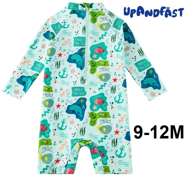 infant's upandfast long sleeved swimsuit - 9-12 months - fishies in aqua
