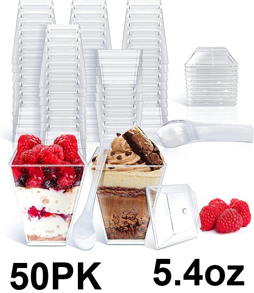 5pk Plastic Dessert Cups with Lid and Spoons - 5.4 oz - clear