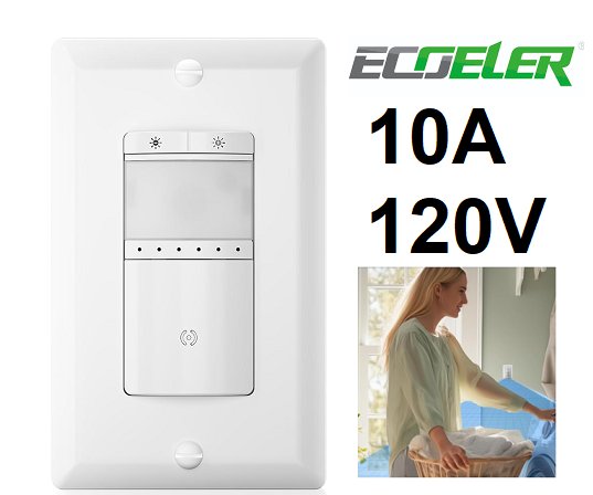 ECOELER PIR Infrared Motion Sensor Dimmer Light Switch - has Occupancy & Vacancy Modes - 10A 120V - white - (model: ym2601)