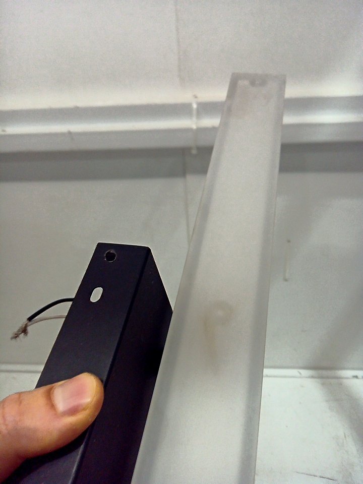 There are some faint dust/dirt markings on the frosted piece and the wires on the back show signs of previous installation. (SEE PHOTOS)
