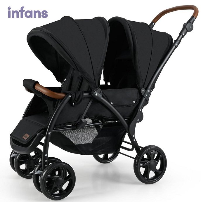 infans foldable baby tandem stroller with adjustable canopy & backrest - black/brown (model: bc10261dk)