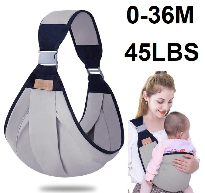 AIYUANMEI BABY CARRIER SLING - 0-36M UP TO 45LBS - GREY/navy blue