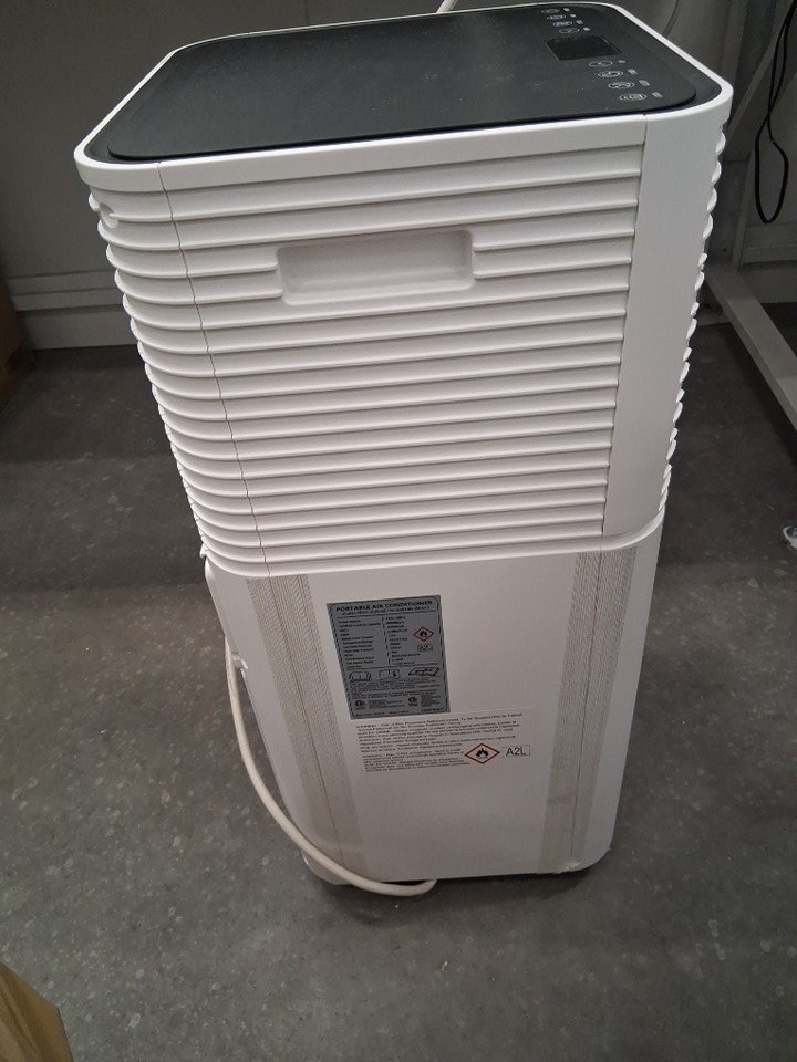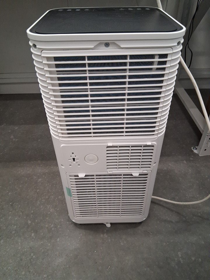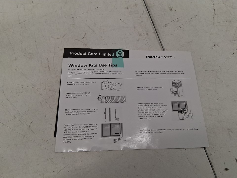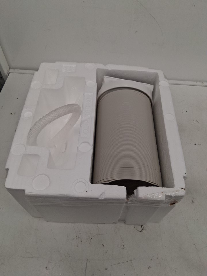 Remote and window brace are missing from the packaging, otherwise appears unused but slightly dusty on exterior from storage/shipping - see photos. Tested for power.