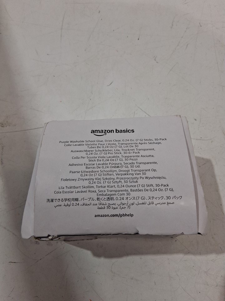30PK AMAZONBASICS WASHABLE SCHOOL GLUE STICKS - 0.24OZ - PURPLE/DRIES CLEAR
