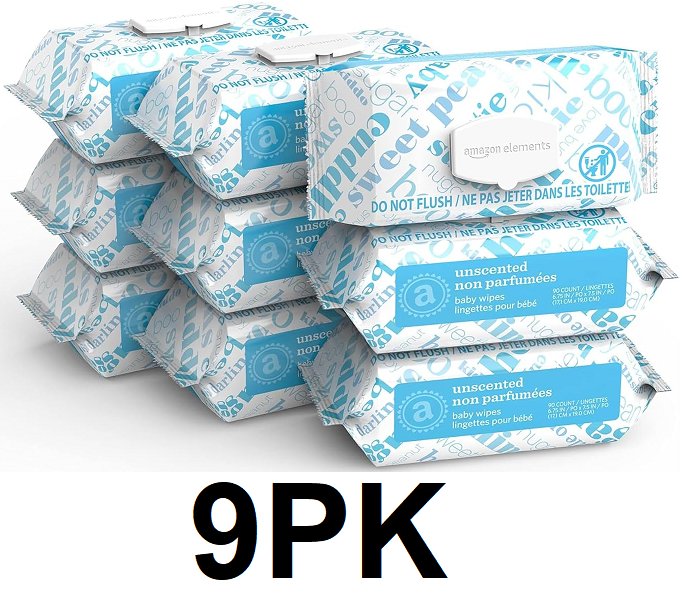 9pk amazon elements fragrance free baby wipes - 90 per pack (810 total wipes)
