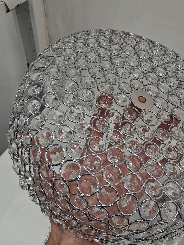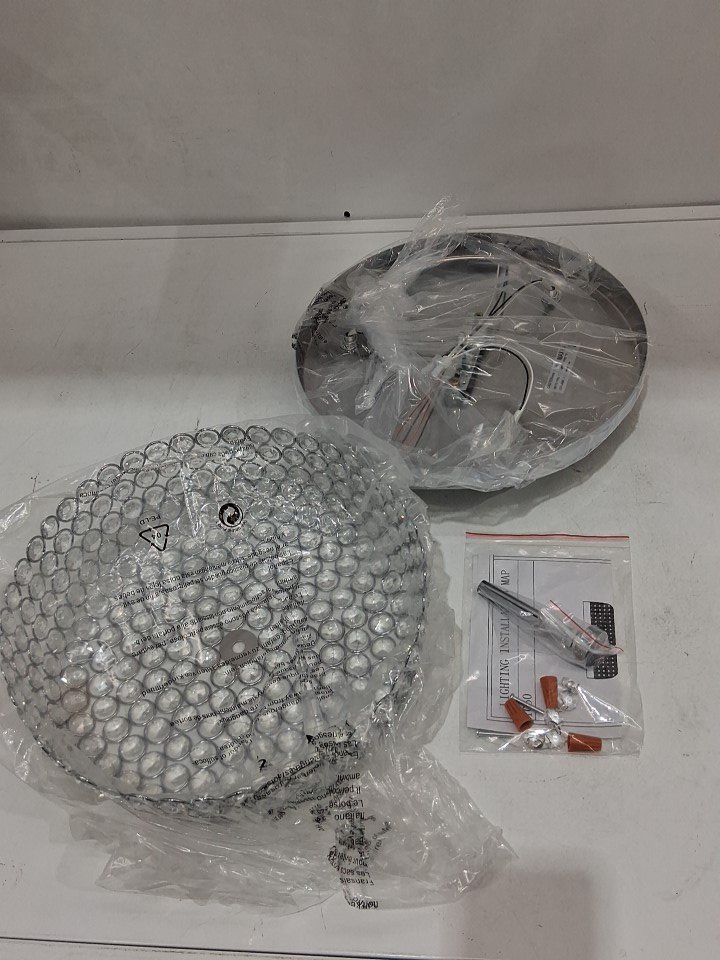 shupregu Modern Crystal Ceiling Light Fixture - 12", 3-Light, flush Mount, Dimmable, 180W - silver/clear