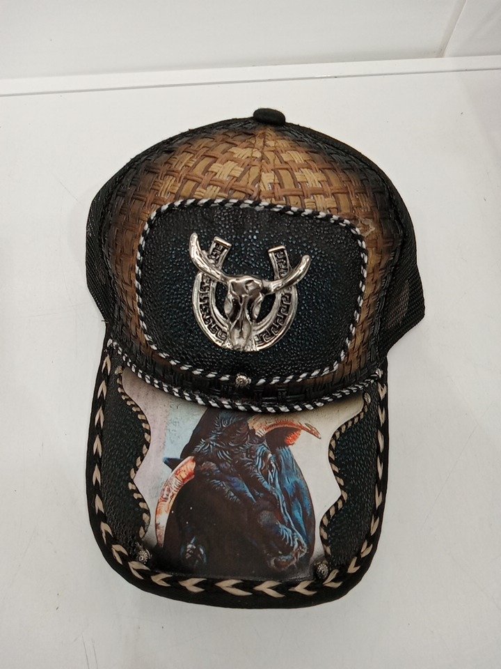 J & A CAPS INNOVATION western snapback ball cap with longhorn skull/horseshoe emblem & bull graphic - OSFM
