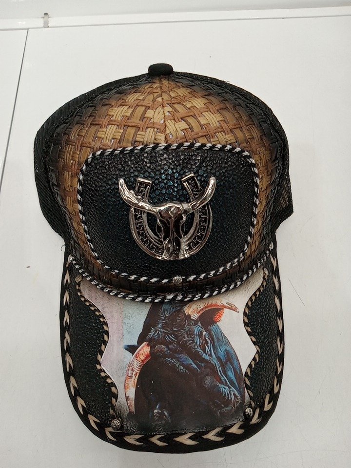 J & A CAPS INNOVATION western snapback ball cap with longhorn skull/horseshoe emblem & bull graphic - OSFM