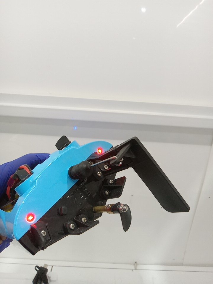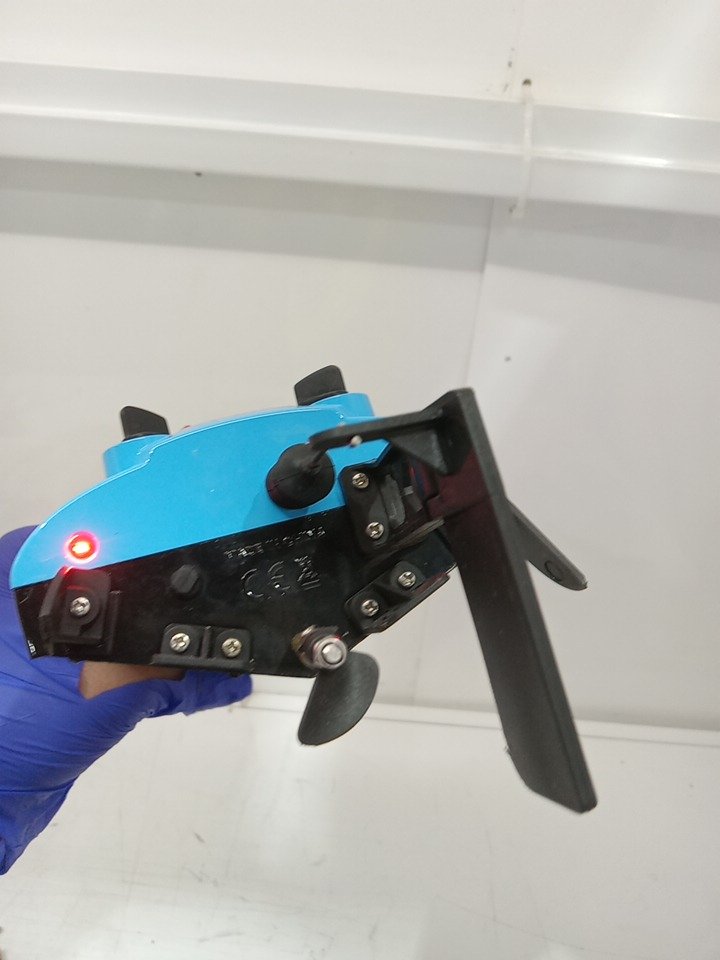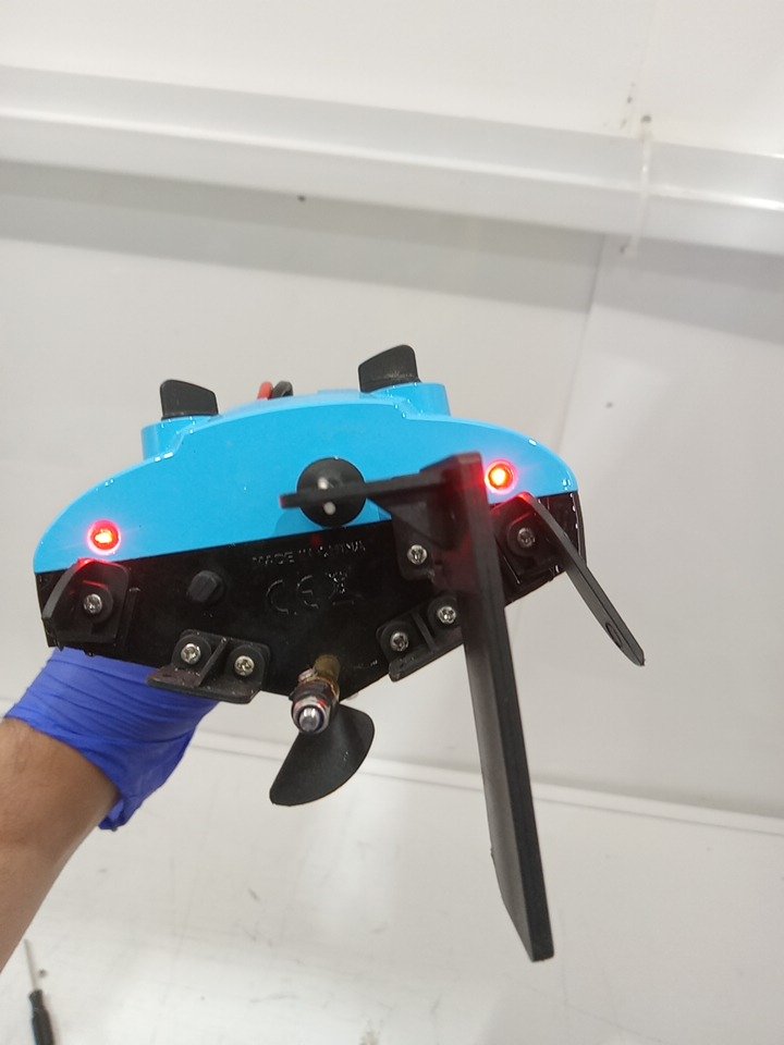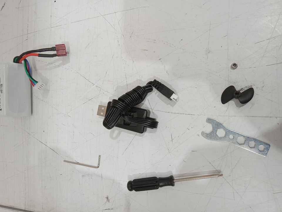 Left fin and the fan blade is broken from previous use. There is a spare fan blade that can be installed. There are minor scratch marks on the sides and top. Tested for power and motor function only. (Please see photos)