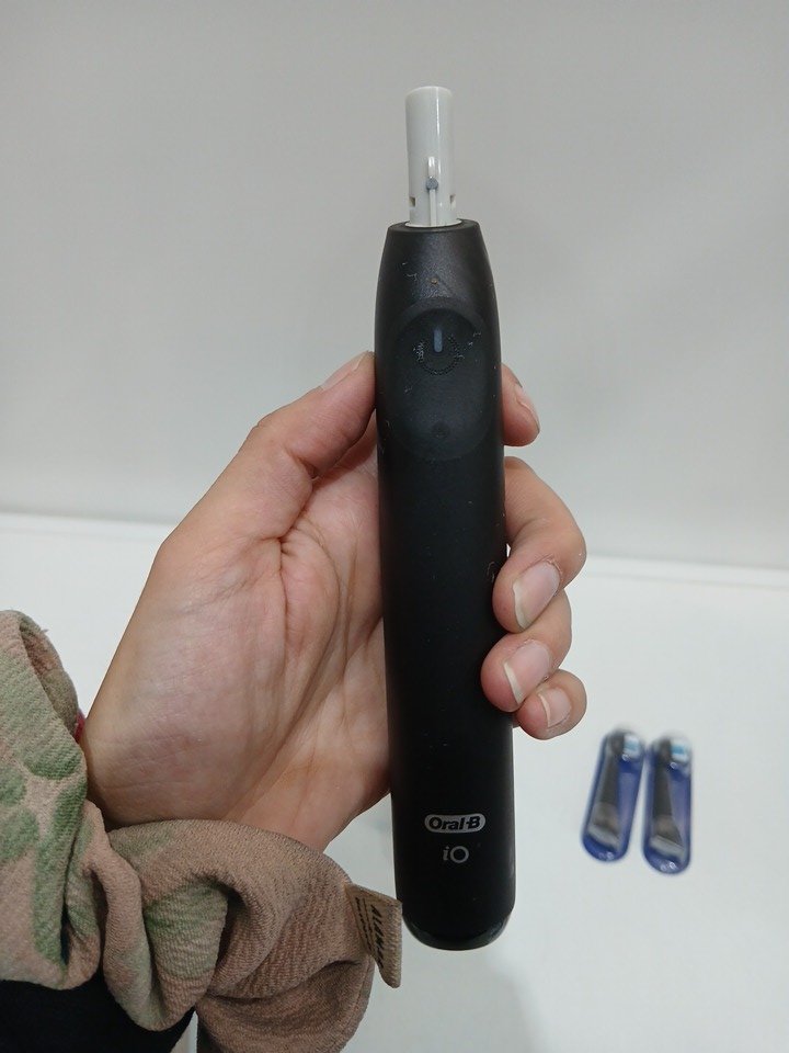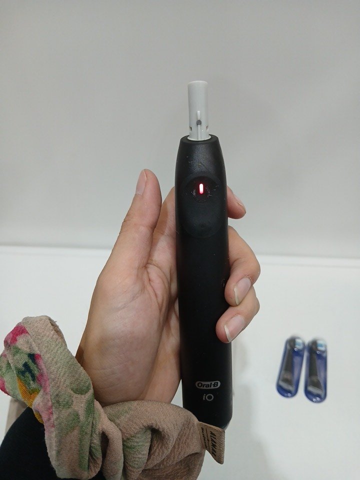 There is a bit of toothpaste residue on the brush handle and one of the included brush heads came opened. We have replaced the opened brush head with a sealed one. Please see photos.