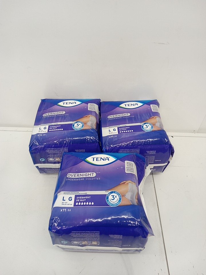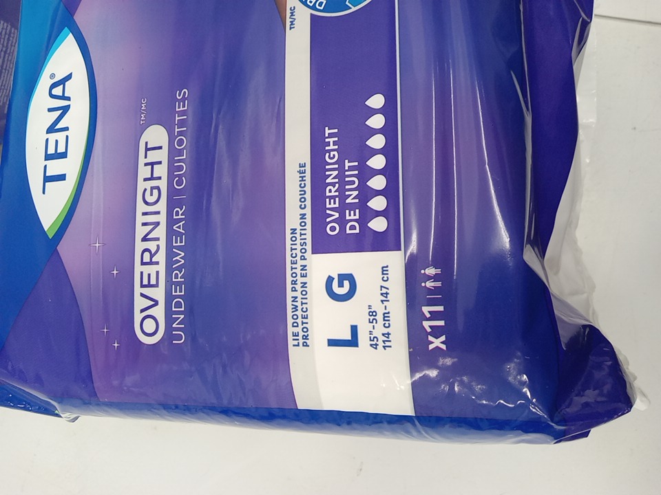 3 (11PK) women's tena Overnight Incontinence Underwear with lie down protection - large (33 total)