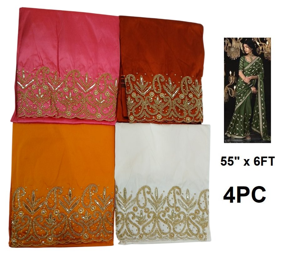 4pc fabric with embellished trim for traditional clothing - 55" x 6ft - multi
