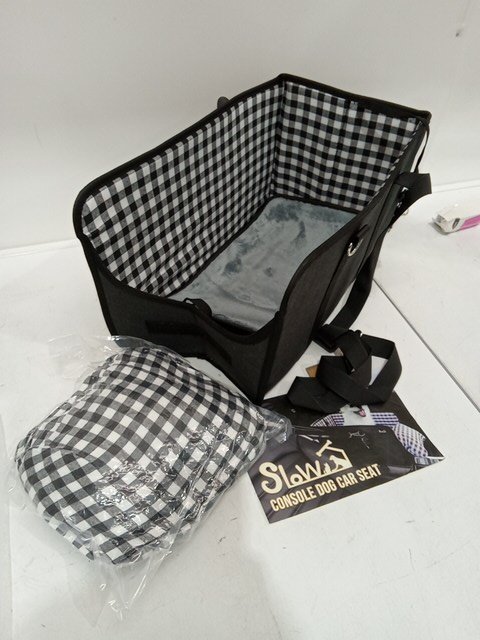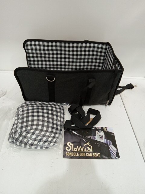 SlowTon Console Dog Car Seat with Safety Belt and Soft Cushions - 16" x 9" x 9" - BLACK/WHITE