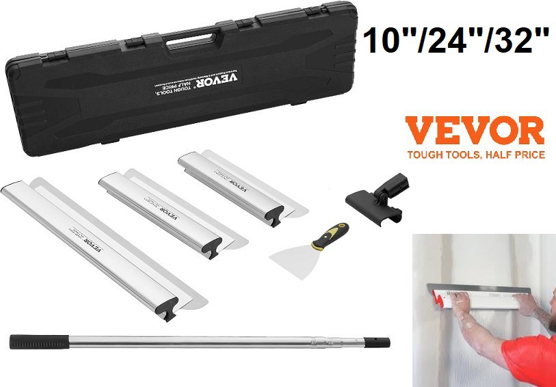 3pc vevor drywall skimming blade set with extension pole and carrying case - 10" / 24" / 32" Blade Lengths - (model: xsj-24-s010)