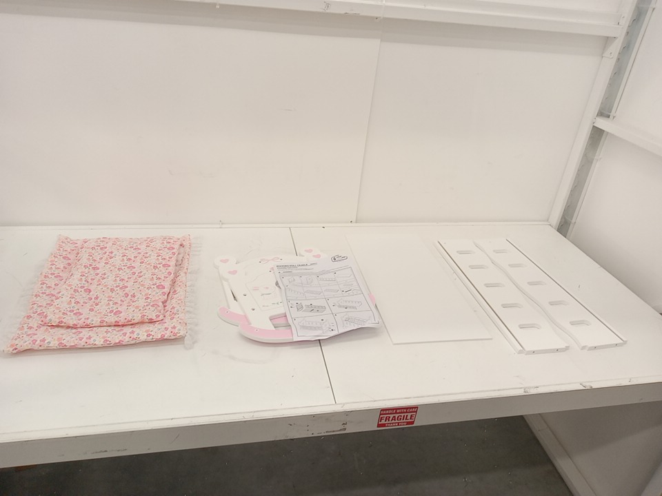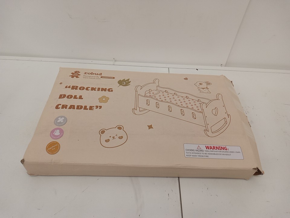 ROBOTIME Baby Doll Crib Cradle with Pink Pad, Blanket, and Pillow, FOR 18" DOLLS - WHITE PINK (MODEL:WRP06)