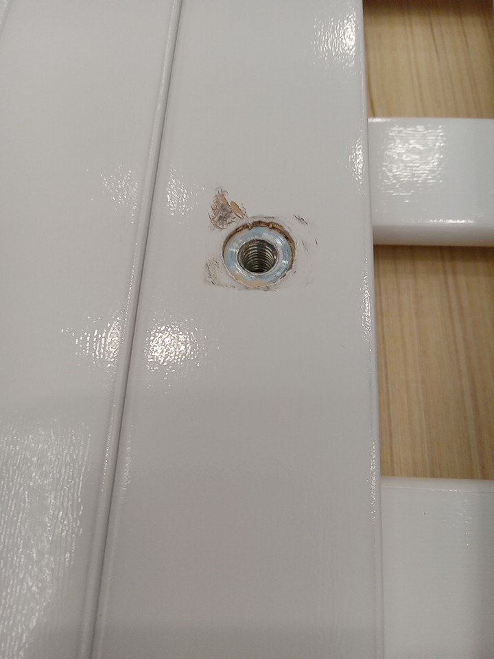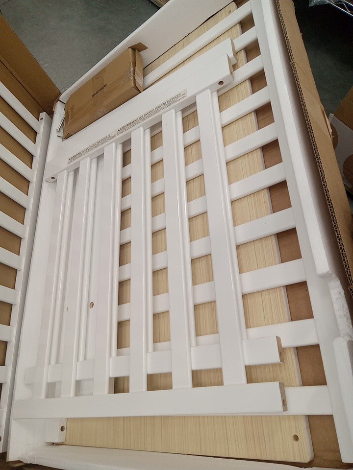 their are some scuff marks and fraying on this item due to shipping and handling. Keep in mind that this item is 4 in 1 however the 2 twin bed conversion kits are sold separately and this item is being sold with the crib and daybed compatibility only. see photos below.