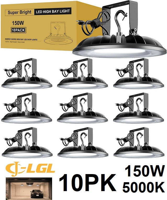 10PK JC-LGL Super Bright LED High Bay Lights - 150W - 5000k Bright Daylight
