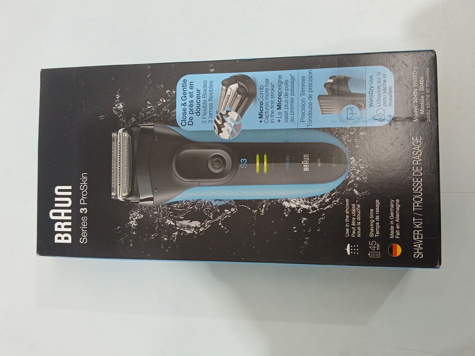 Braun Series S3 ProSkin Men's Electric Foil Shaver / Rechargeable Electric Razor, Wet & Dry - Blue (model: 3040s 5416).