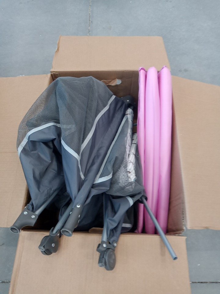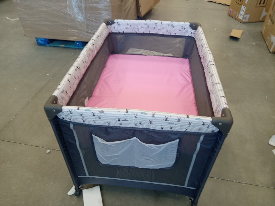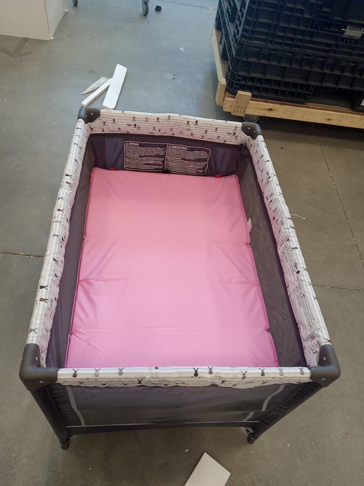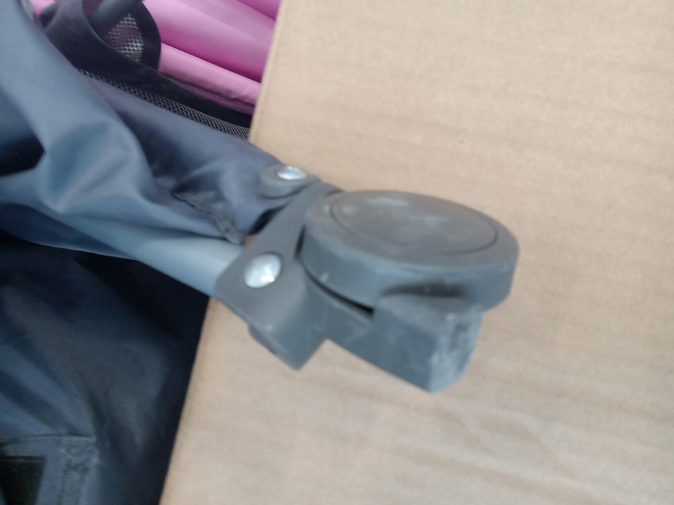 Their are some scuffs and dirt on the wheels of this item, the mat that is included is pink instead of white as seen in the main image and this item is missing the soft toys that are seen in the main image. see photos below to view everything present with this listing.