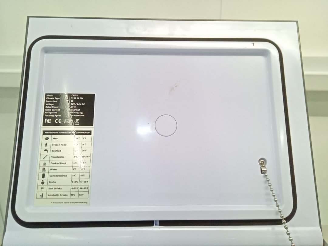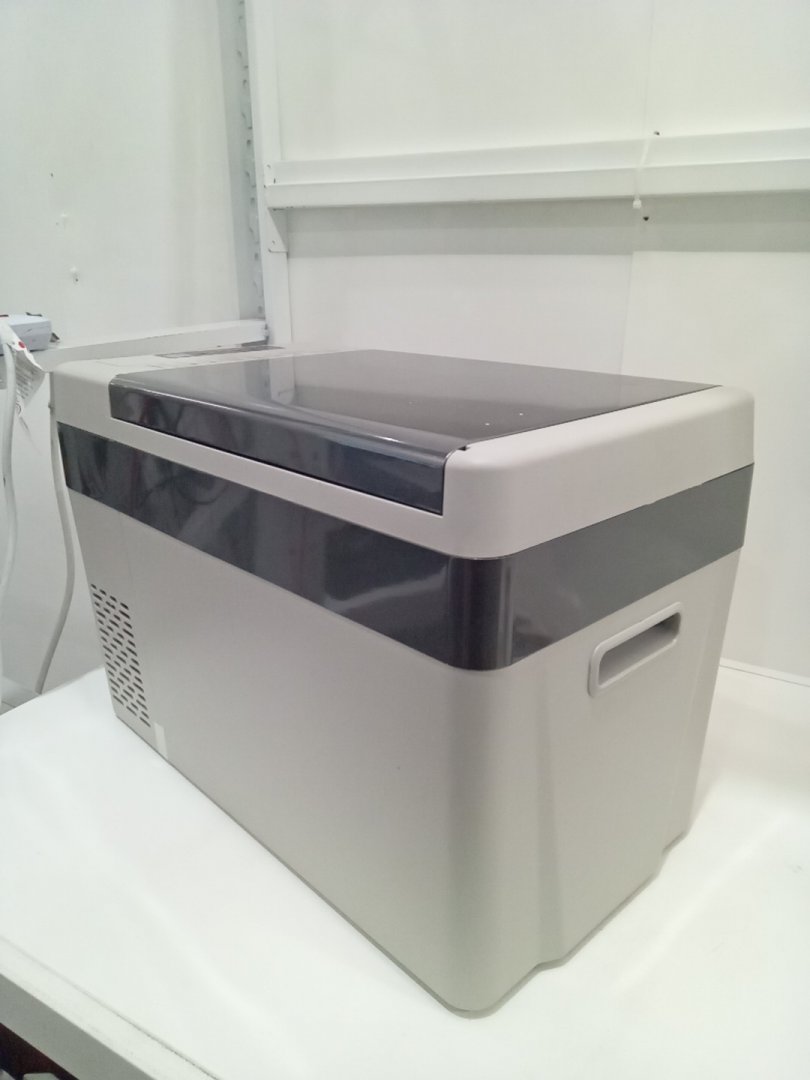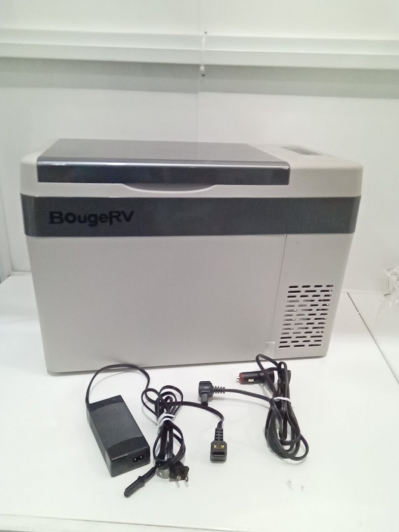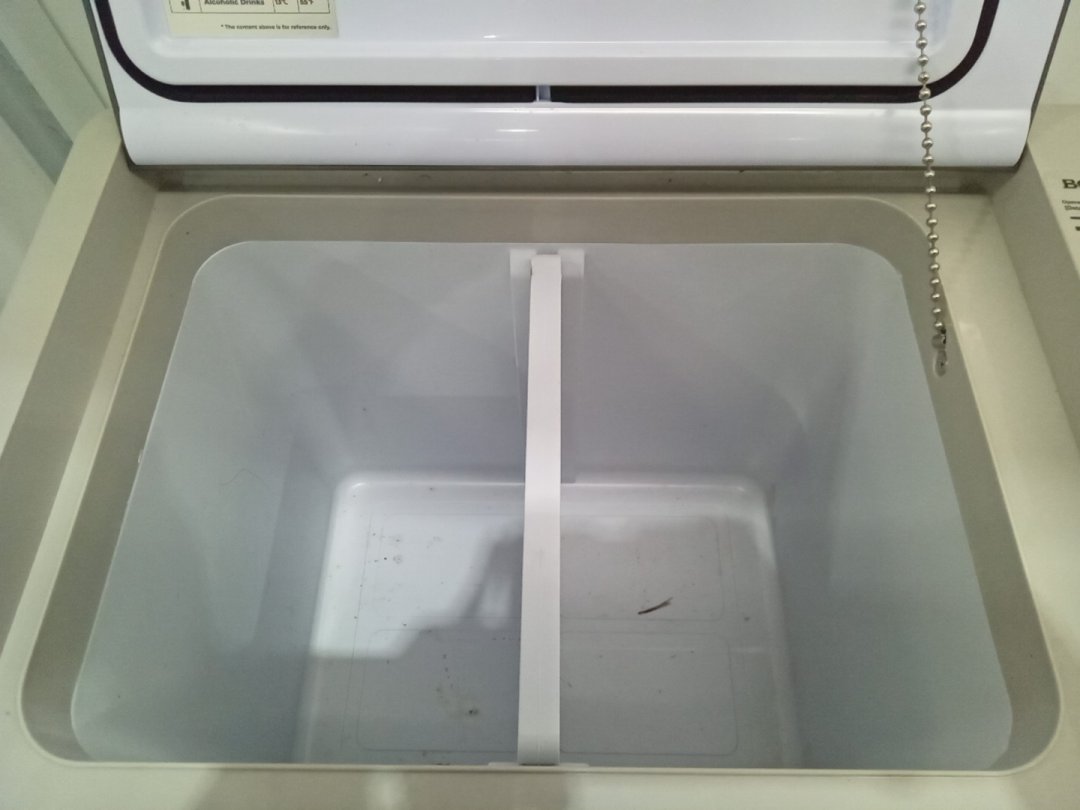 traces of dirt/stains inside from prior use. one of the rubber grips on the bottom is missing and gives the item a slight wobble when it's moved. please see photos.