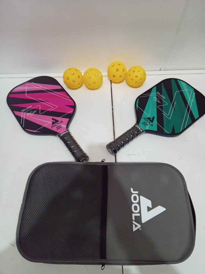 7pc joola ben jonhs pickleball paddles with balls and storage bag - pink/teal