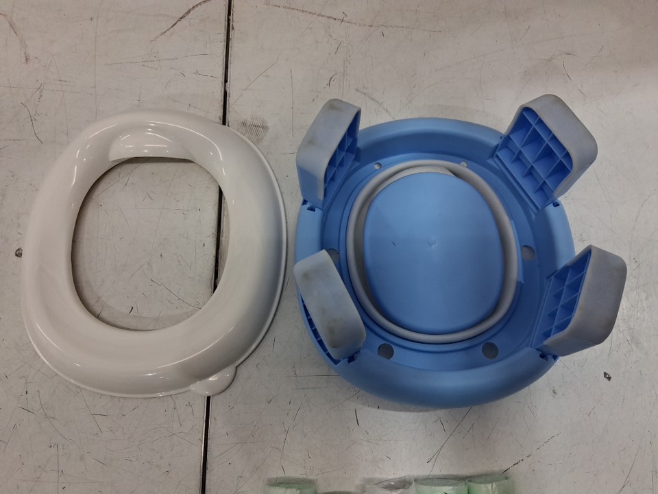 Item has signs of previous use such as dirt on rubber soles of legs and light dirt/debris inside the travel bag.