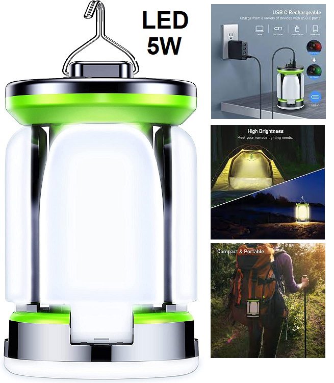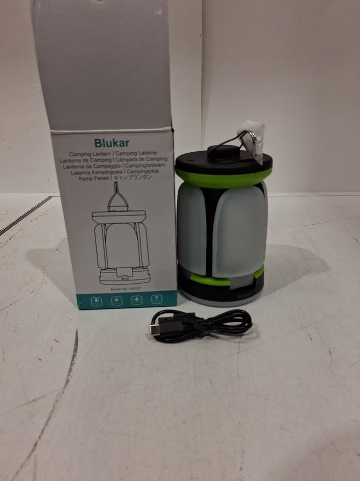 BLUKAR RECHARGEABLE CAMPING LANTERN - 7 LIGHT MODES/60 LED/10+ HOURS BATTERY 5W - GREEN/BLACK (MODEL: K9107)