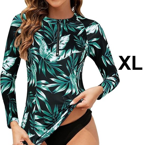 WOMEN'S Tanst Sky Rash Guard Long Sleeve Swim Top - Extra Large - TEAL/BLACK