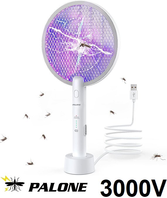 PALONE ELECTRIC BUG ZAPPER RACKET SWATTER - 3-LAYER 3000V - WHITE - (MODEL: WD-942)