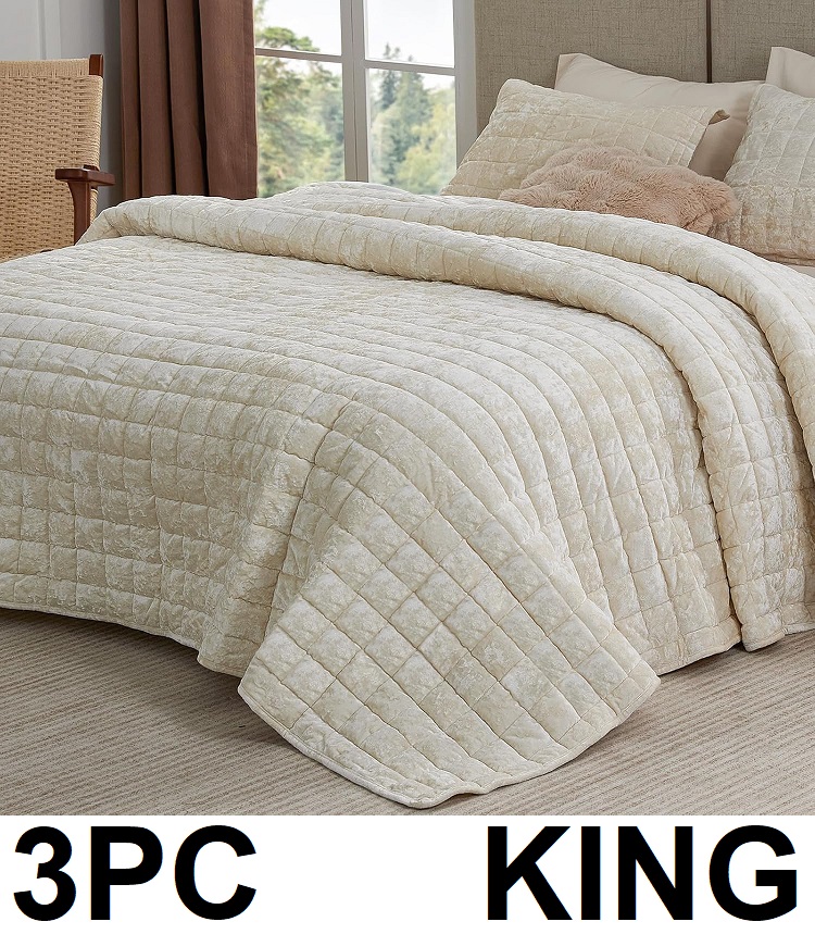 3pc BEDELITE Velvet Quilt comforter Set - king - beige