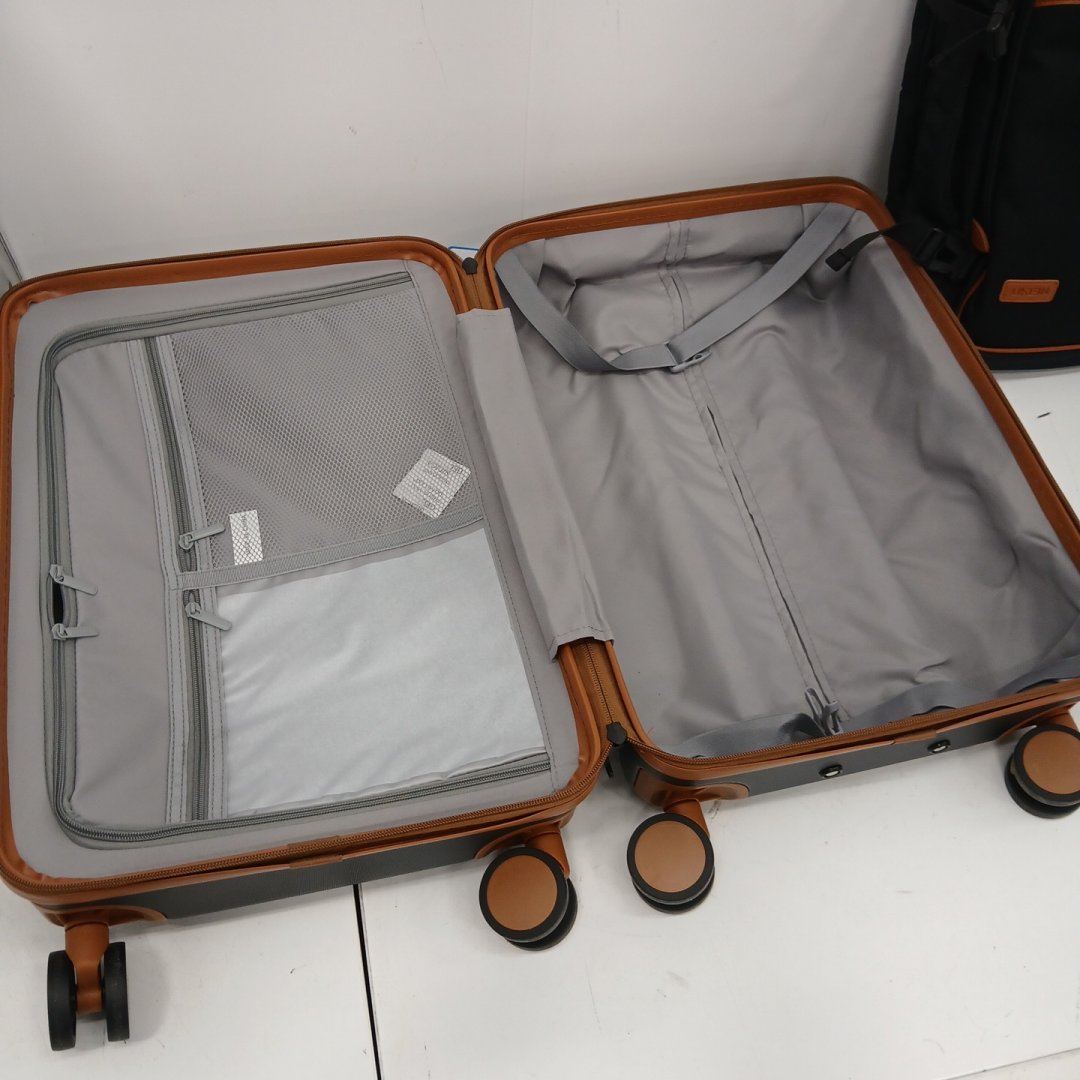 3PC UKEIN Carry On Luggage SET (includes backpack & toiletry bag) - 20" - Dark Grey / Black / brown