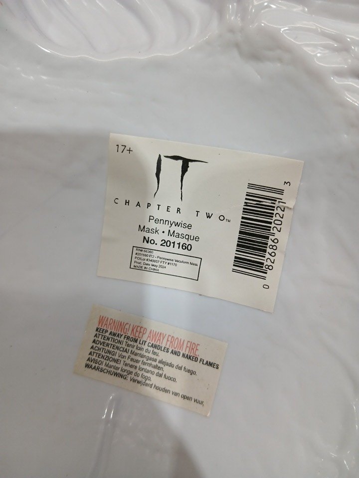 ADULT RUBIES IT MOVIE CHAPTER 2 PENNYWISE PLASTIC MASK - ONE SIZE FITS MOST - WHITE/RED - (MODEL:201160)