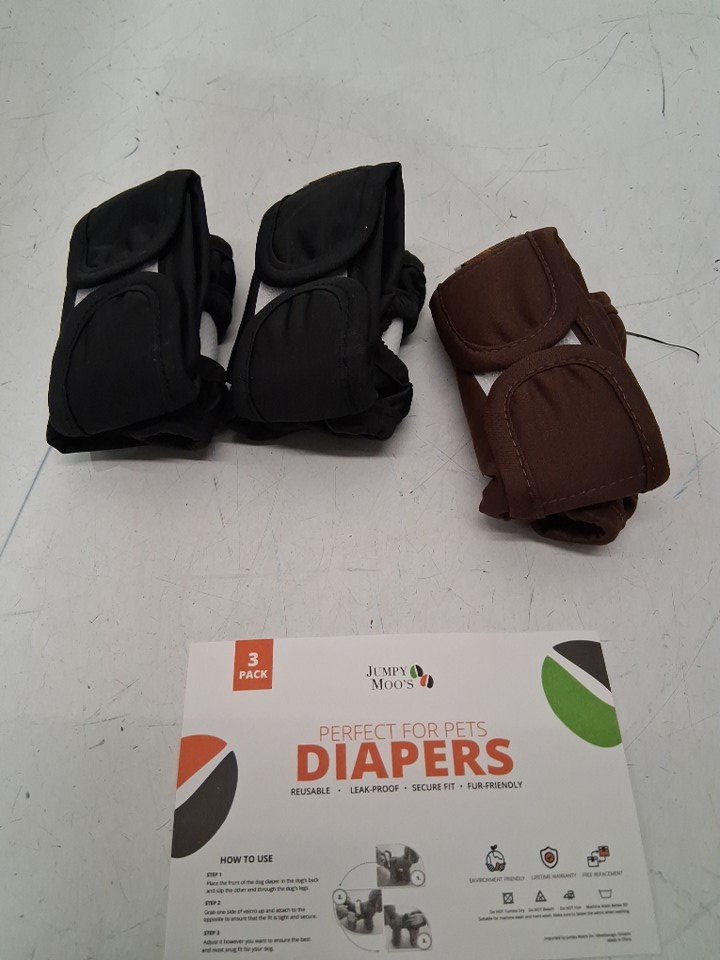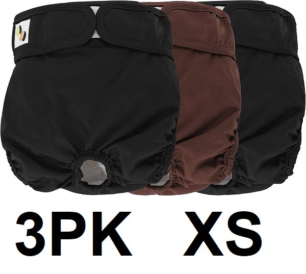 3pc Jumpy Moo's Dog diapers for female highly absorbent waterproof breathable adjustable - Extra Small - For newborn puppies - Black/brown