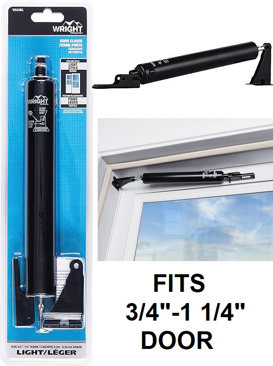 Wright Pneumatic Door Closer for light style doors - FITS 3/4"-1 1/4" DOOR - black (model: ‎V820BL)