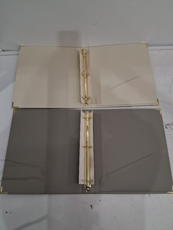 Please note: • The darker green binder has a ruffle on the front, see photos. • Our photos look darker than the stock photo.