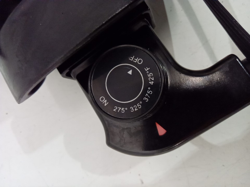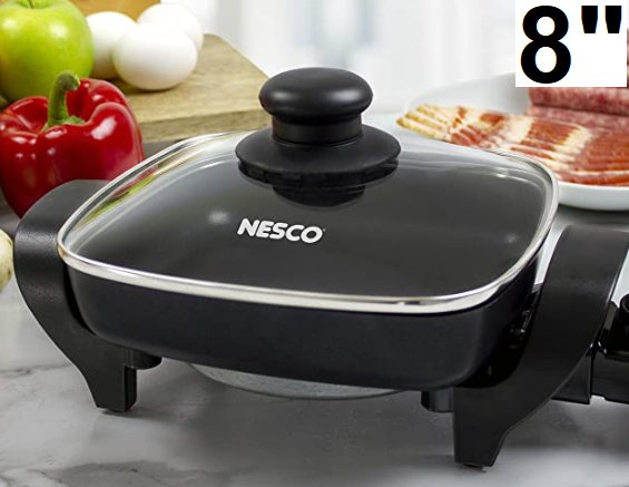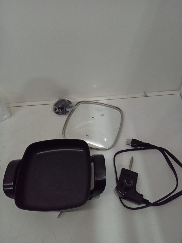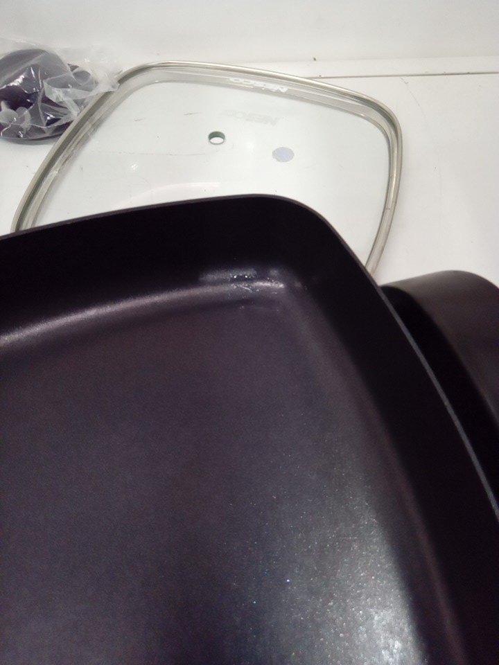 Minor grease marks on skillet, indicating light use.