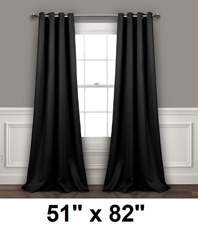 (2 panel ) lush decor insulated grommet blackout curtains - 51" x 82" -black